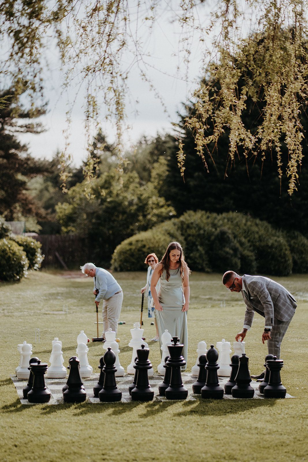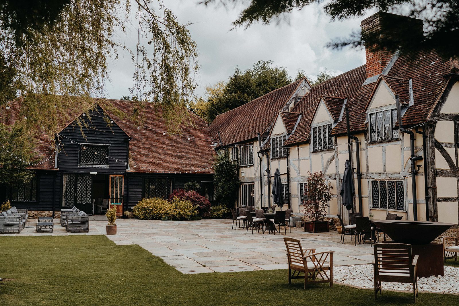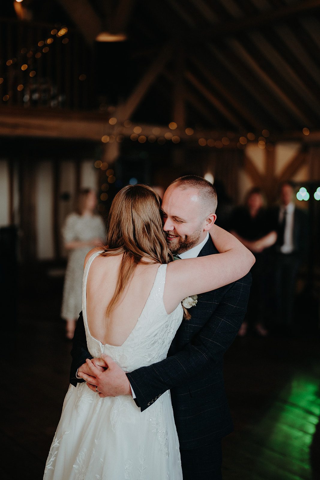 After the ceremony, everyone stepped out onto the patio where the newlyweds made their joyful confetti exit – an unmissable moment and a favourite photo opportunity at Cain Manor. Guests then enjoyed drinks on the lawn and outdoor games under blue skies, whilst Alicia & Matt took a quiet moment together to explore the exclusive Surrey Hills grounds with Photographer Kit Myers. As night fell, Alicia & Matt shared a romantic first dance beneath twinkling fairy lights, before the evening party kicked off, and disco lights kept the dance floor full.