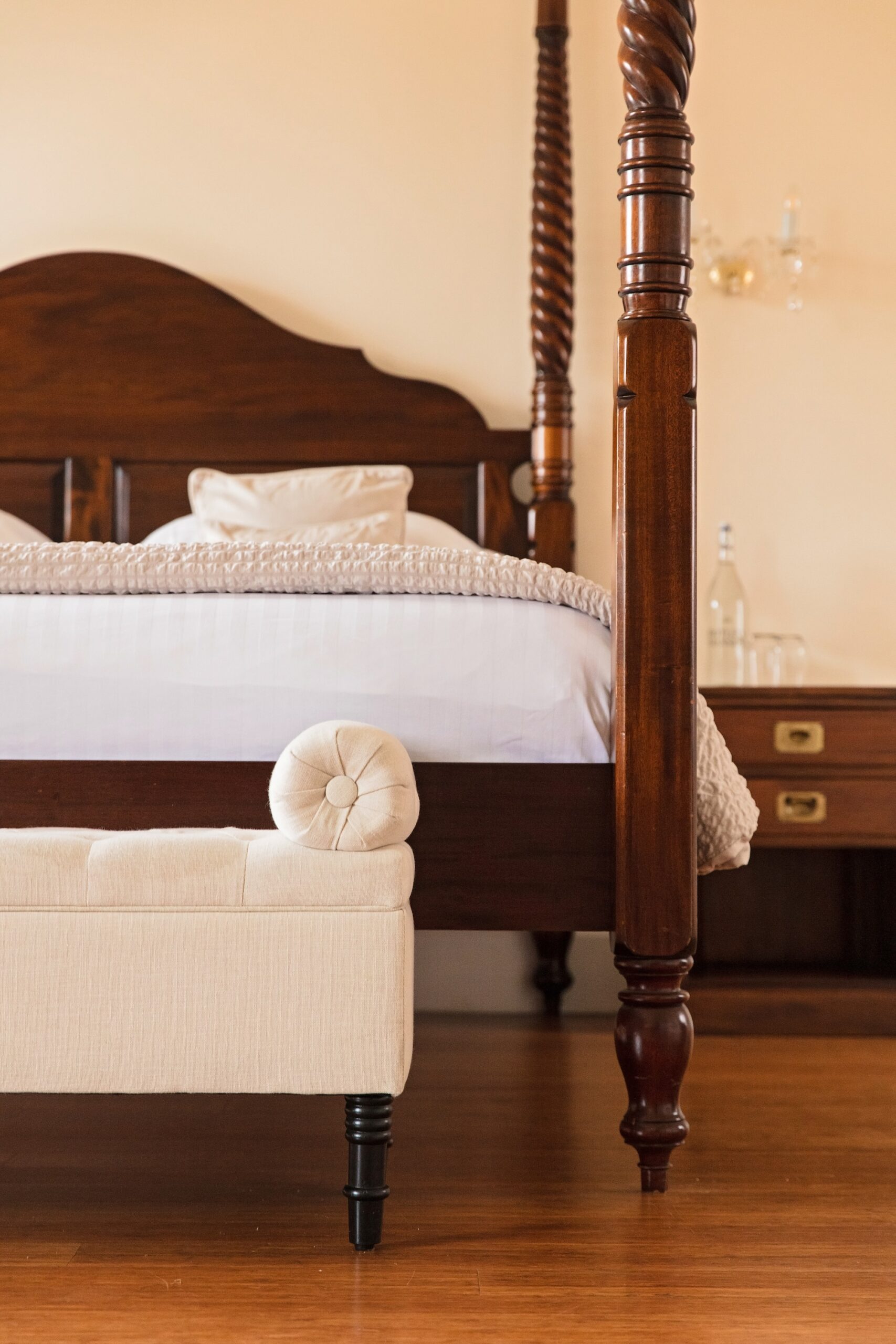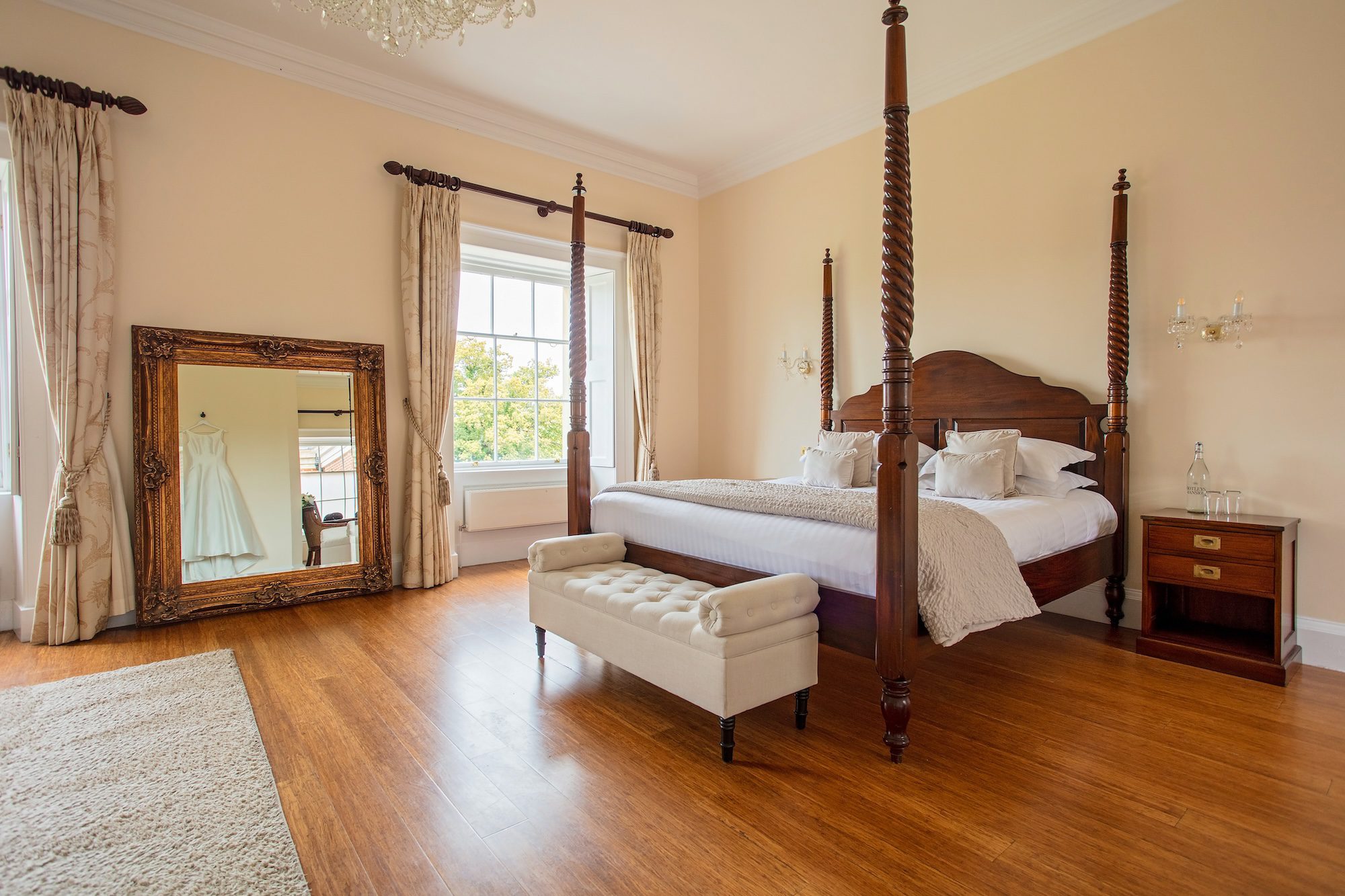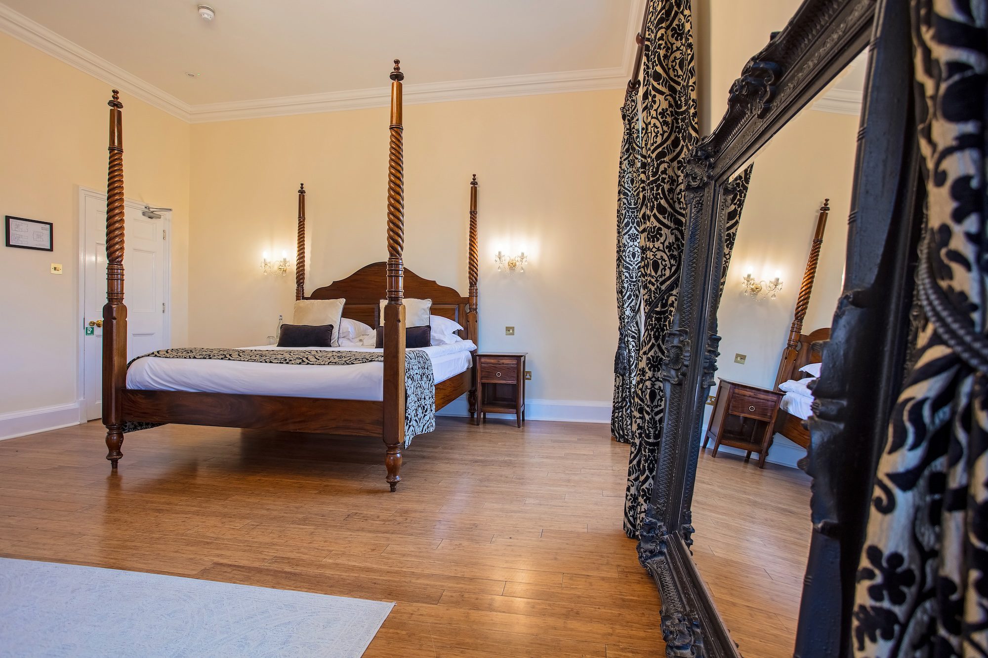 Steal away to the Botleys Suite on your wedding night – the largest of twelve bedrooms at our Surrey wedding venue, with sweeping parkland views, a four-poster bed, and a bathroom with both rainforest shower and free-standing bath.