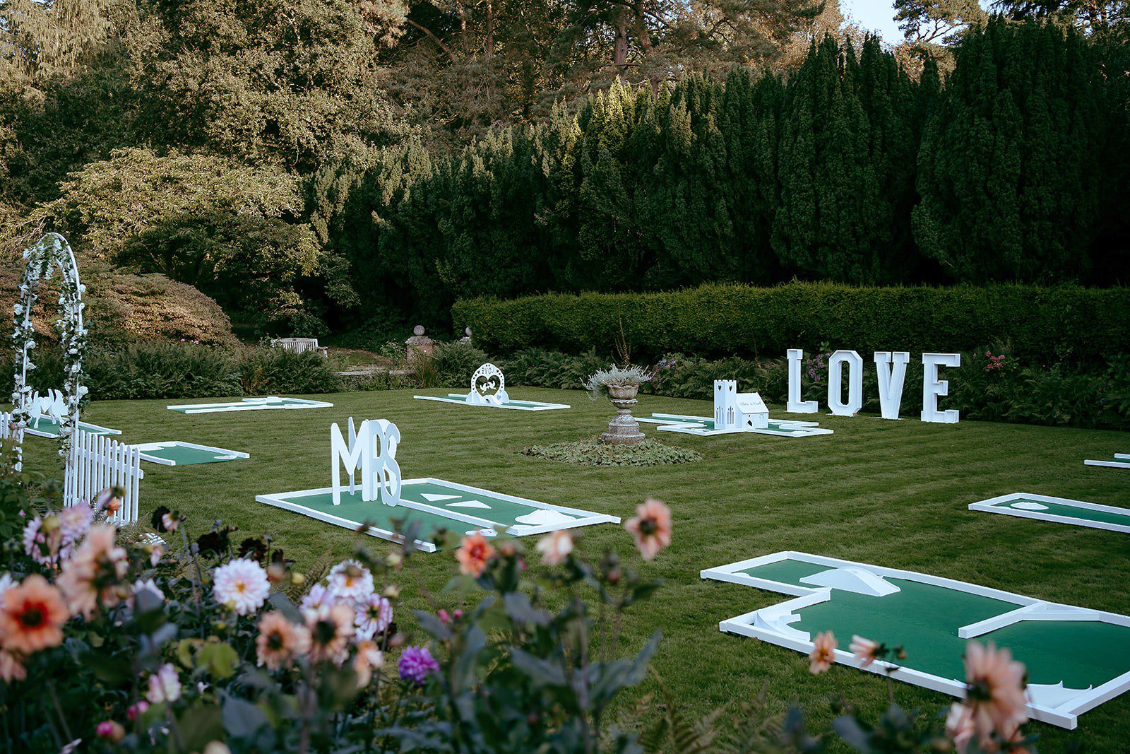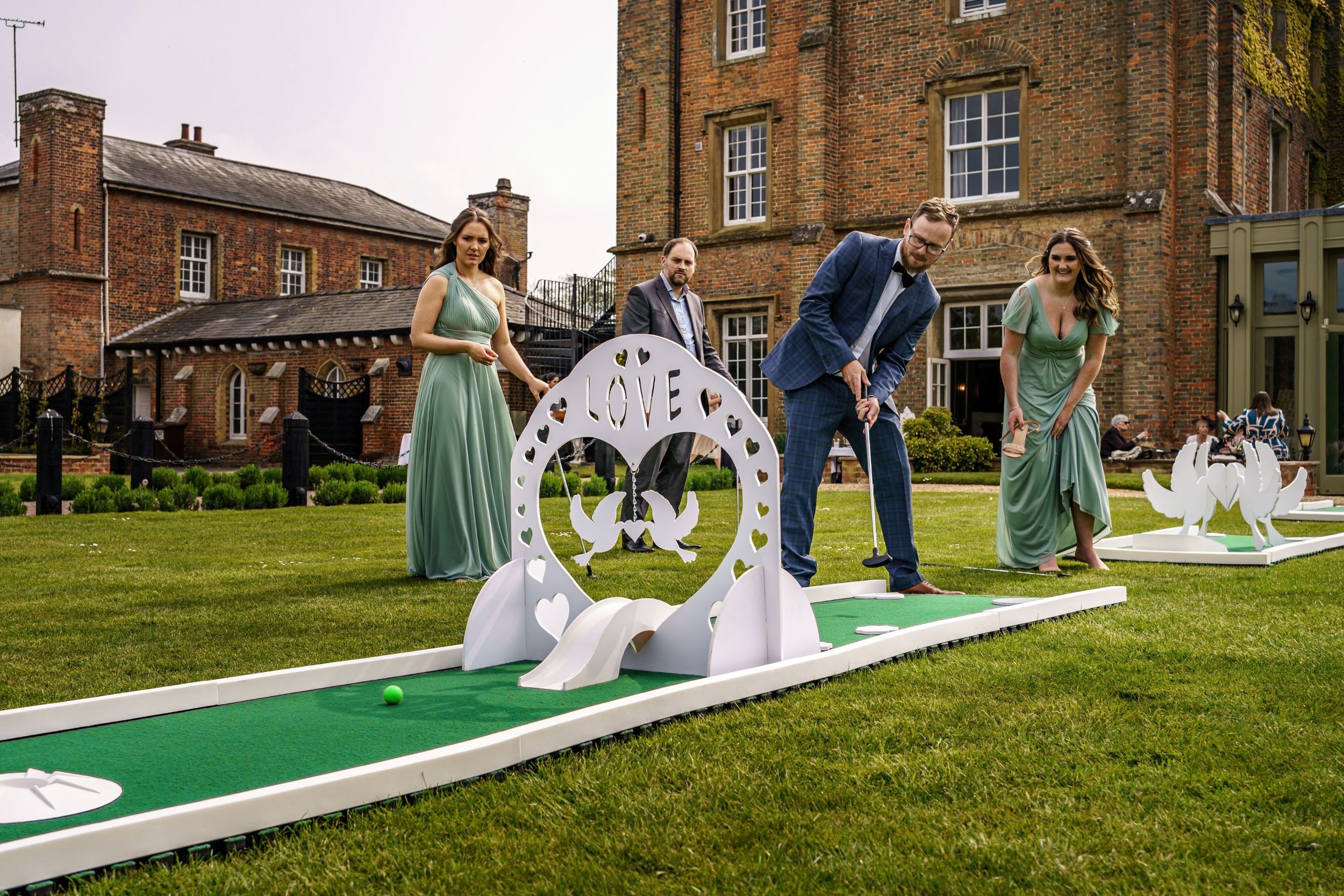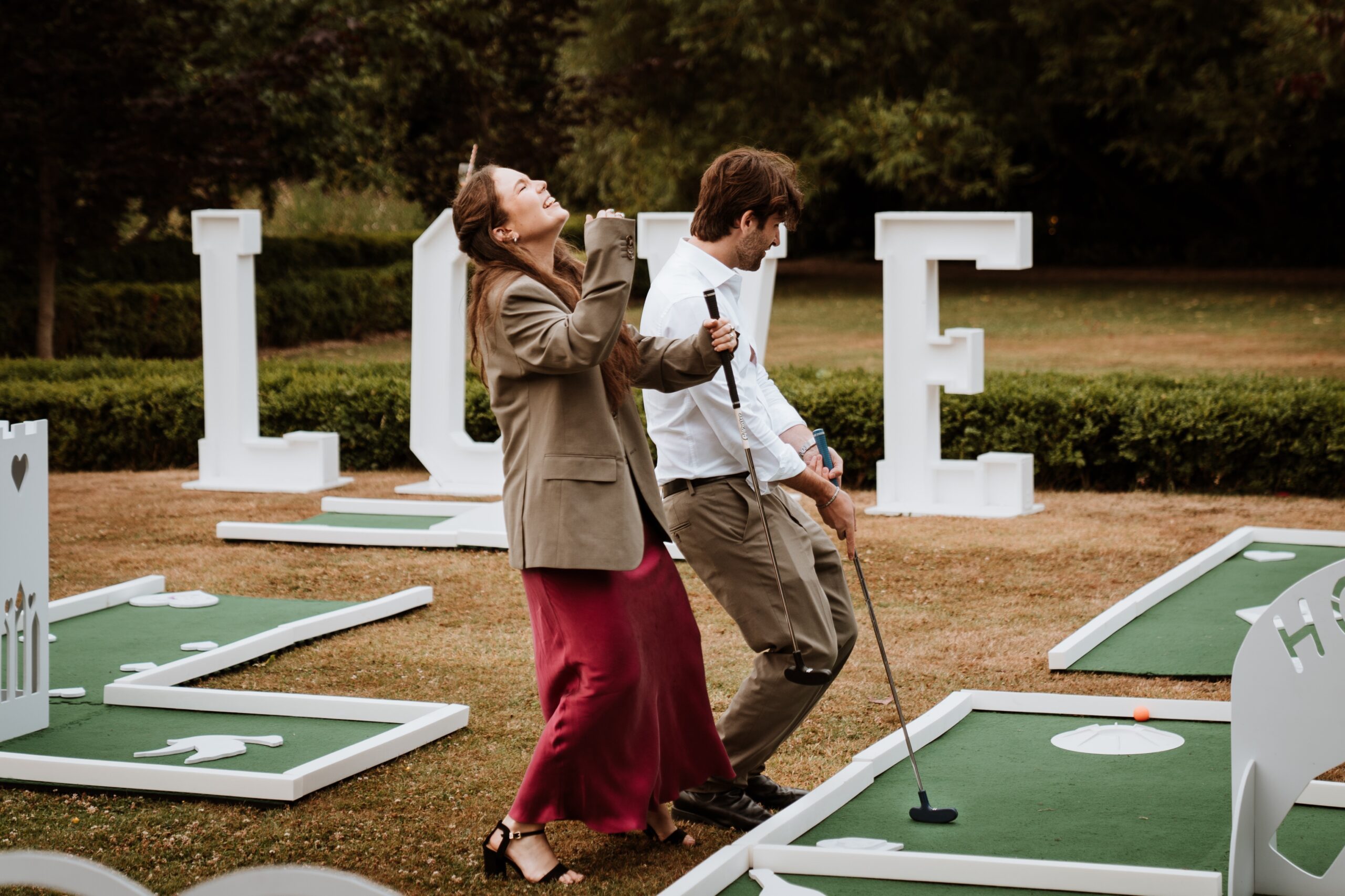 Mini golf is a fun and interactive activity that brings guests together, whether they’re old friends or meeting for the first time! It keeps everyone entertained throughout the day, making it a perfect addition to moments like the drinks reception or while photos are being taken. With beautifully themed obstacles and personalised touches, our courses are designed to complement your venue’s aesthetic, and with flexible delivery and setup options, you can enjoy stress-free entertainment that fits seamlessly into your day.