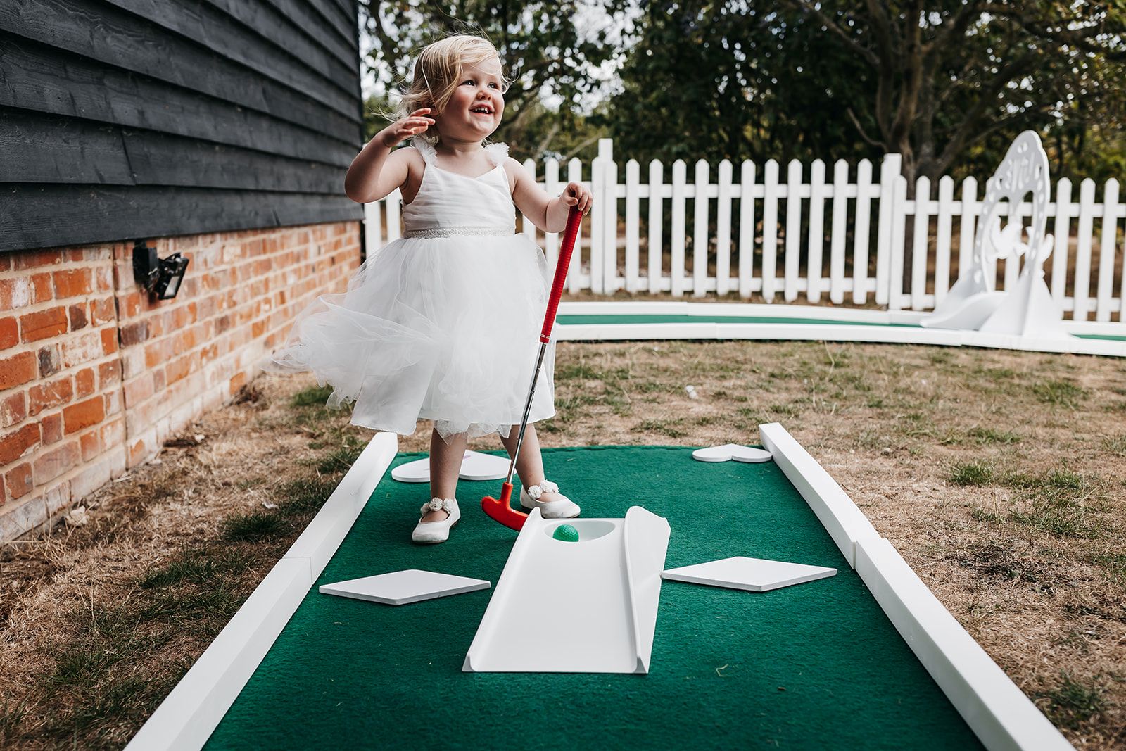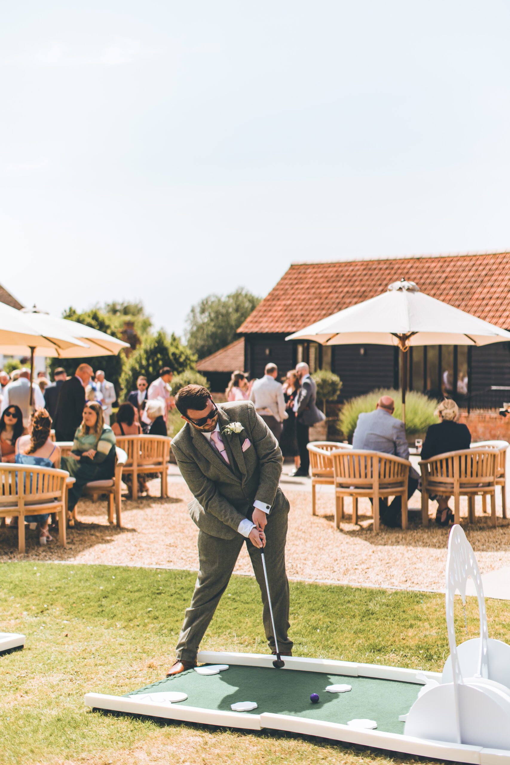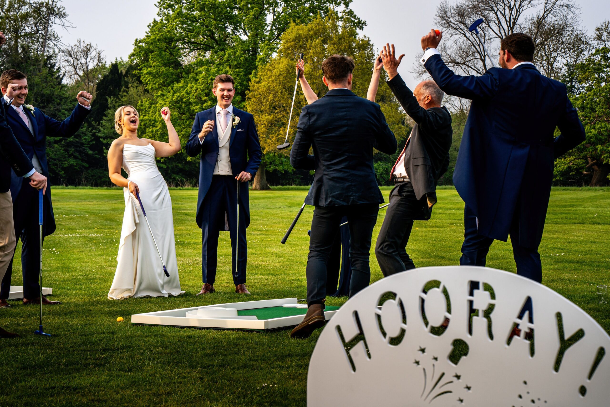 Mini golf is a fun and interactive activity that brings guests together, whether they’re old friends or meeting for the first time! It keeps everyone entertained throughout the day, making it a perfect addition to moments like the drinks reception or while photos are being taken. With beautifully themed obstacles and personalised touches, our courses are designed to complement your venue’s aesthetic, and with flexible delivery and setup options, you can enjoy stress-free entertainment that fits seamlessly into your day.
