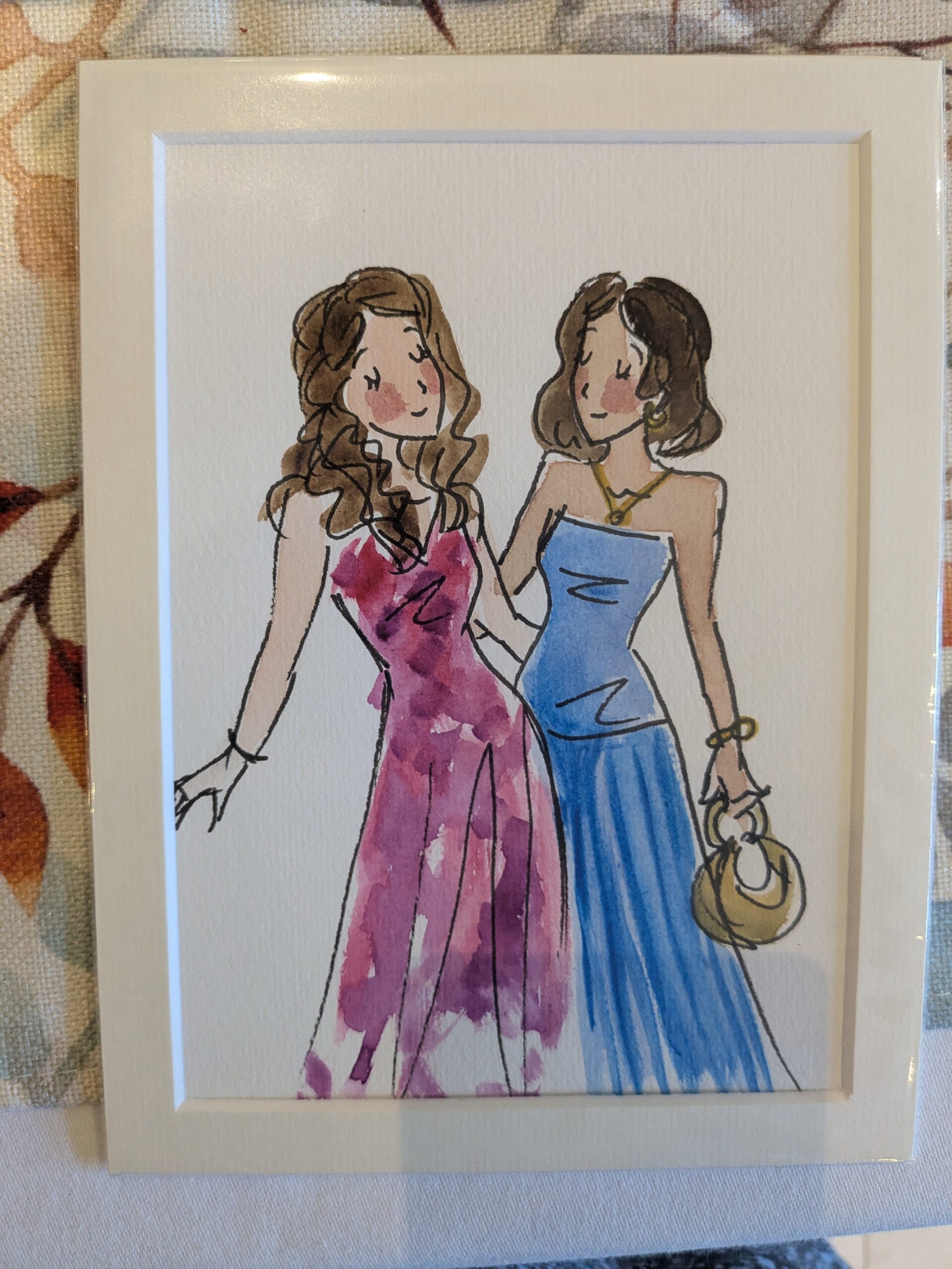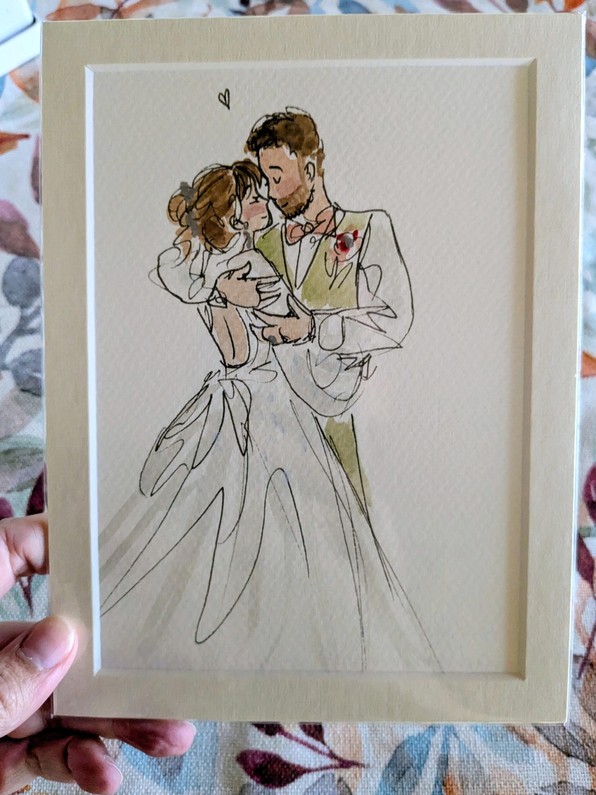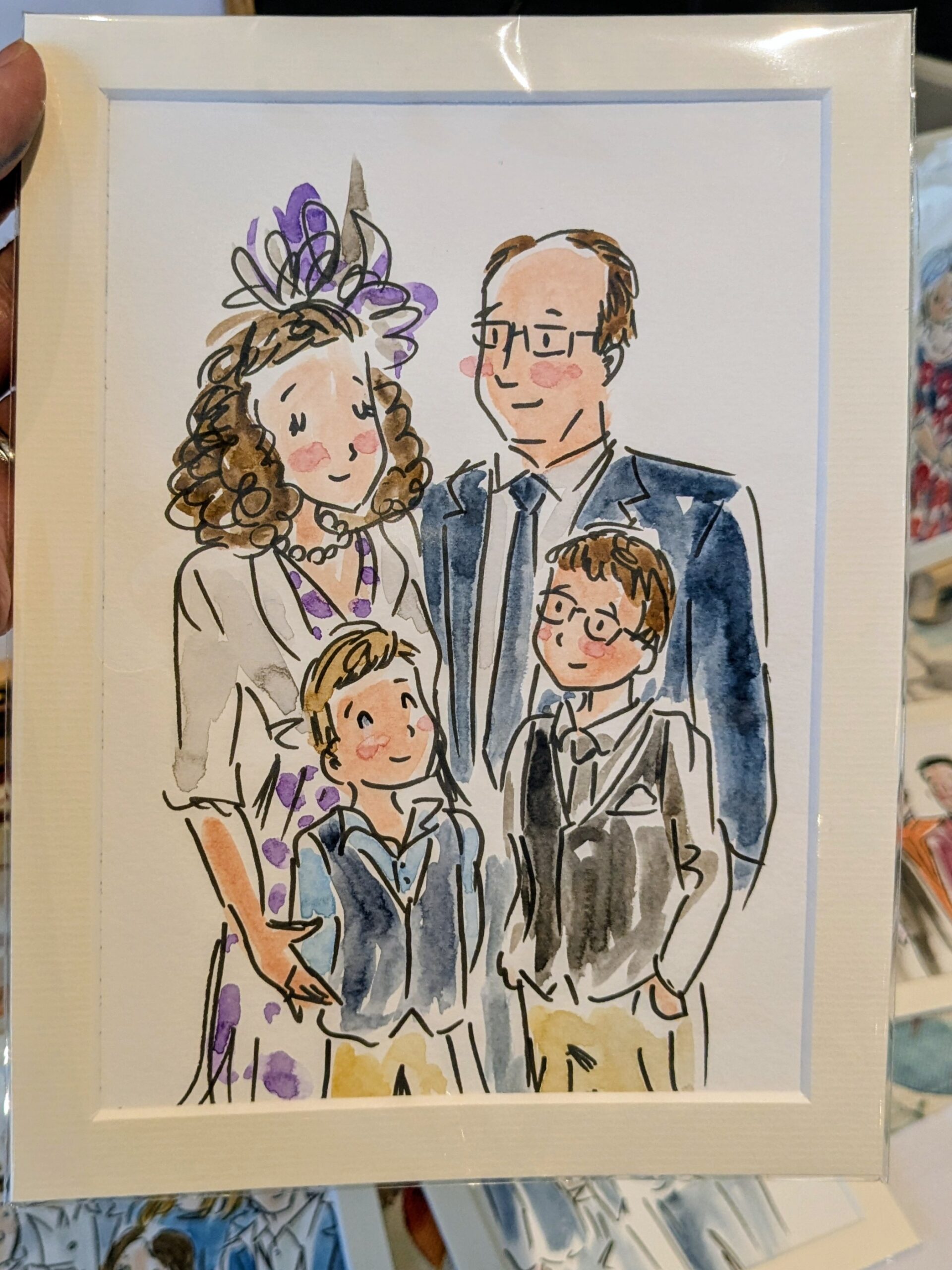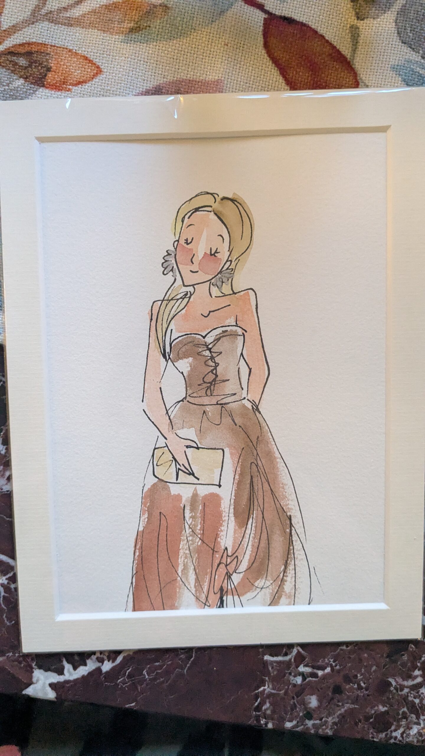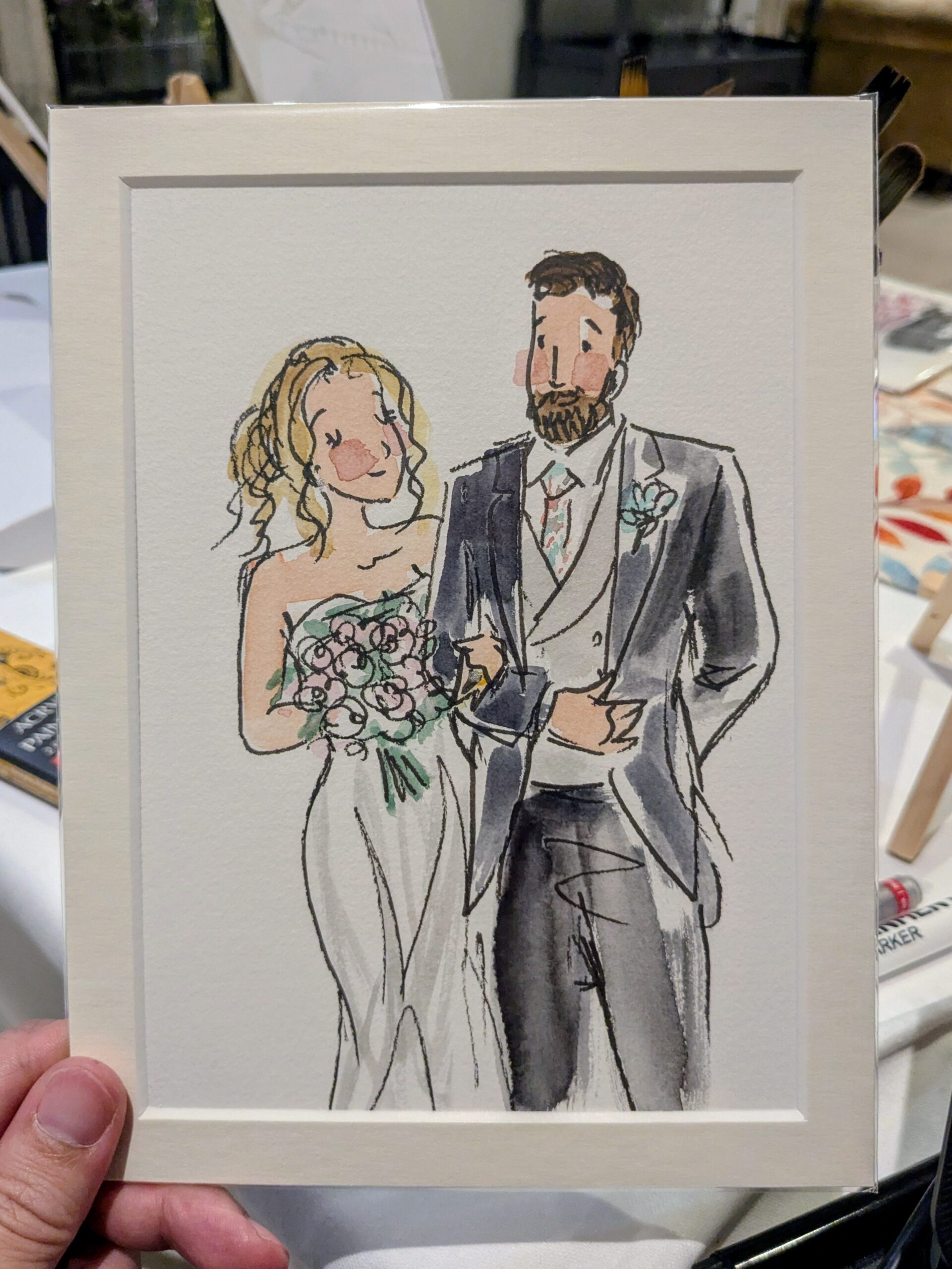 I truly believe that everyone looks beautiful on a wedding day. Guests have all made such a tremendous effect with their outfits, hair, accessories, but it’s more than that – it’s because they are there to celebrate the love of people close to them. I aim to create flattering illustrations which show this, and which can then be displayed as memories of the day for years to come. I love what I do!